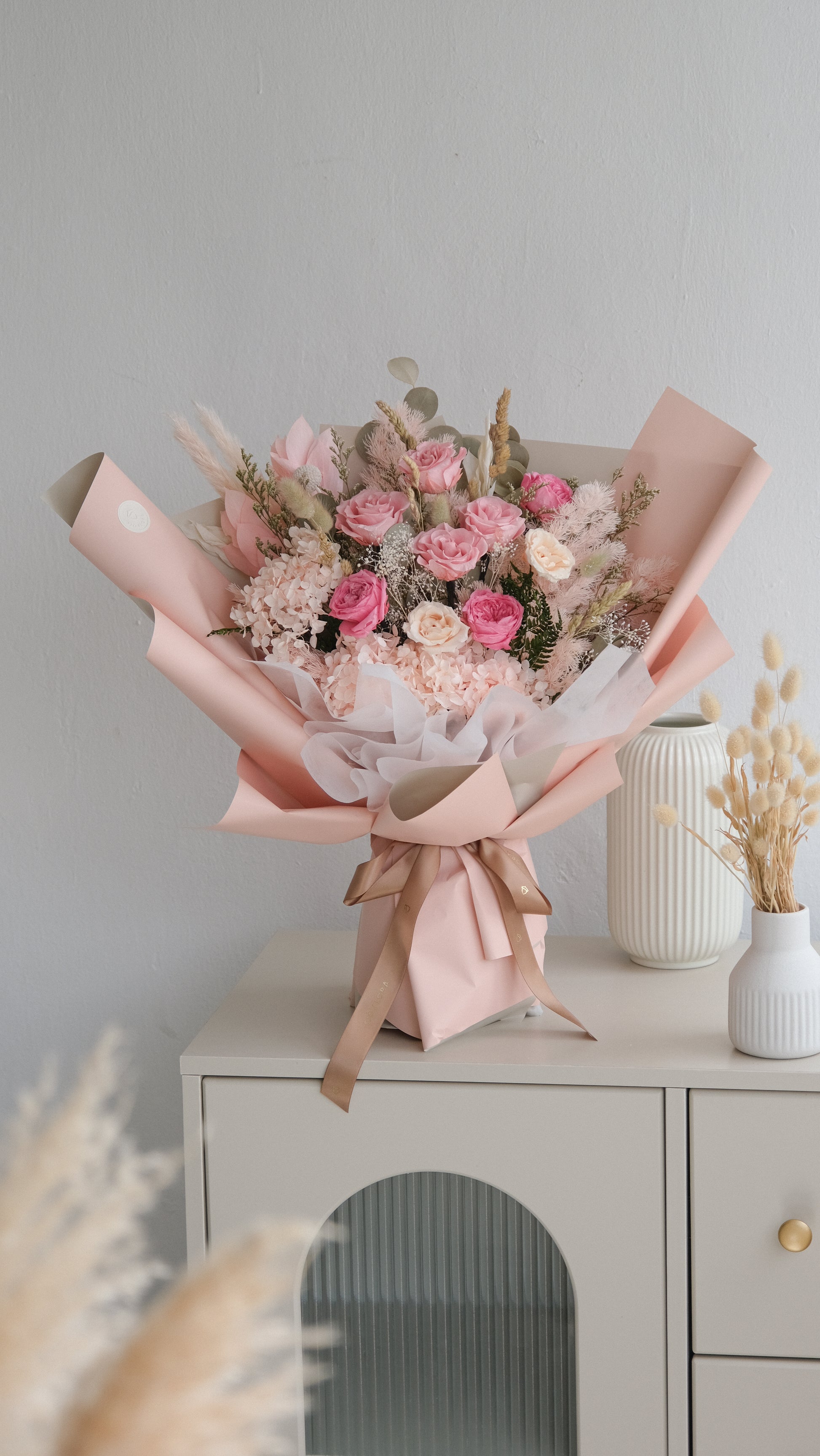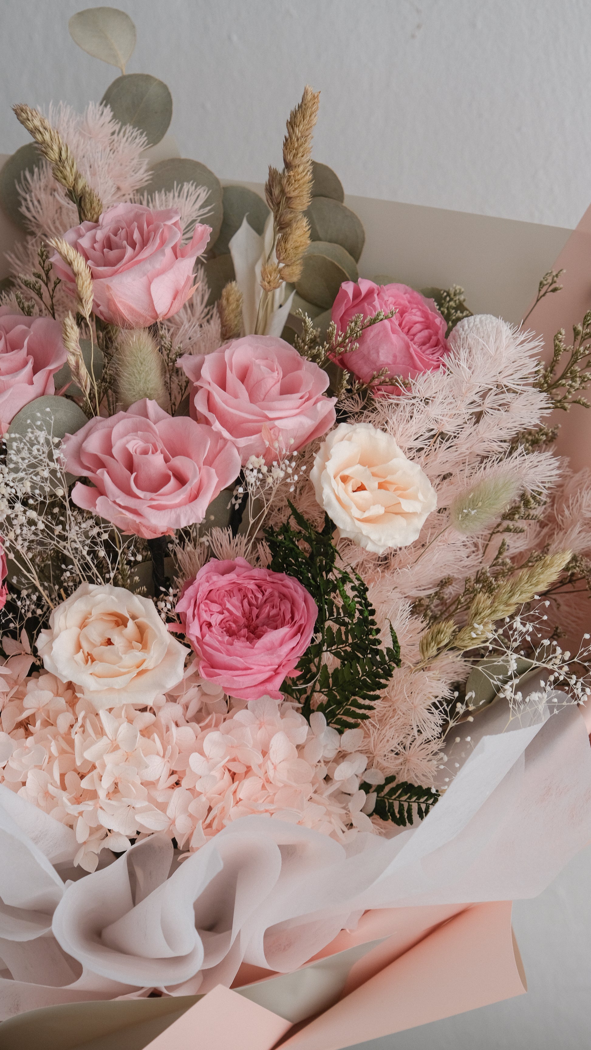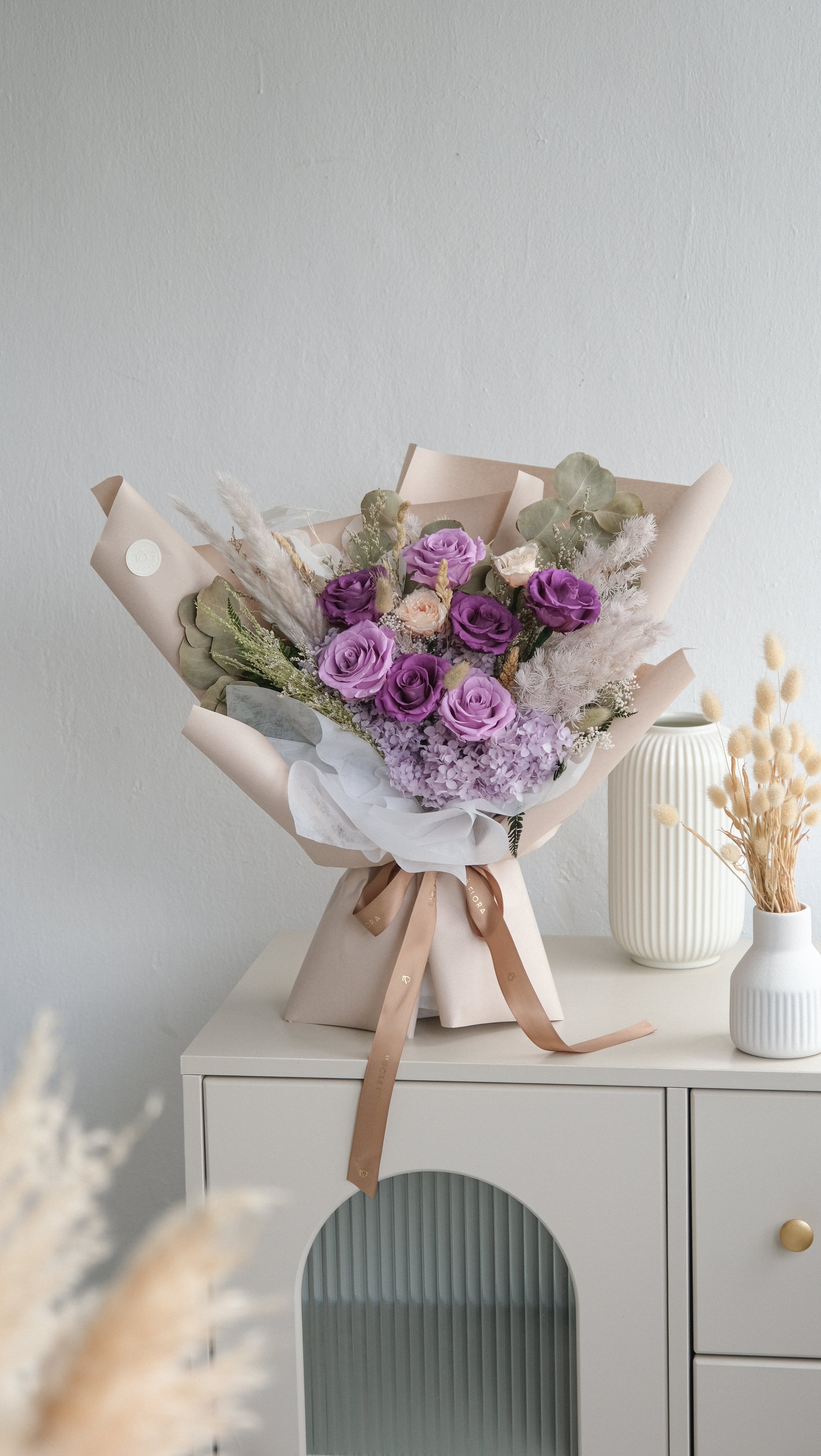 A gift can be so much more than just an object; it can also be a physical expression of love. Whether you're looking for a way to surprise your loved ones or just want a unique alternative, flower bouquet are a wonderful addition to any room. At SJÖ Flora, we are always looking for new, innovative ways to bring nature to you. Our flower bouquet are handcrafted with careful attention and unparalleled love for detail. We create each bouquet as though it were intended for a dear friend or loved one, so that you can experience that same feeling when receiving one of our gifts. From preserved roses, carnations, sola flowers, and gerberas, the beauty of flower bouquet is that they are so versatile. No matter the occasion, a beautiful bouquet of preserved flowers not only brings natural and exquisite beauty into your house but also preserves fond memories. They are a perfect present for your family, friends, and loved ones to show how much you care for them and make them feel special on any occasion, whether it's your anniversary, birthday, or wedding. And if you want to make your gift even more personal and memorable, you can even go the extra mile and opt to include personalised wordings to your bouquet.