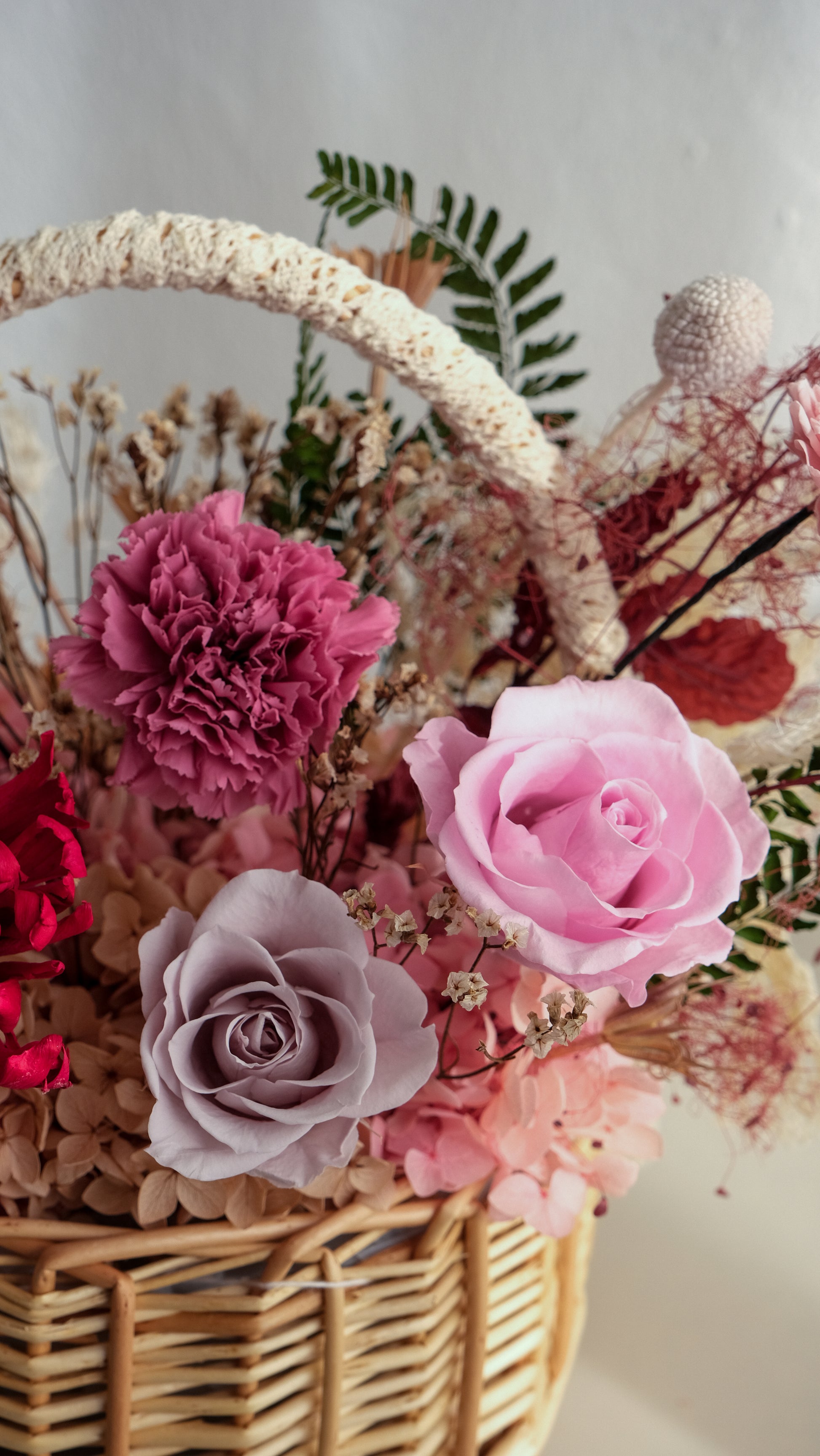 SJÖ Flora Singapore offers an exceptional range of flower basket arrangements featuring both dried and preserved flowers, perfect for any occasion. Our services include dried flowers Singapore delivery and preserved flower delivery Singapore, ensuring that your floral needs are met with utmost convenience. With options for dried flowers same day delivery and preserved flowers same day delivery, you can enjoy the beauty of our arrangements without any delay. As a trusted florist, SJÖ Flora takes pride in delivering exquisite dried and preserved flowers to your doorstep. Whether you're looking for SJÖ Flora preserved flowers or dried flowers, our dedicated team ensures a seamless and timely flower delivery experience across Singapore.