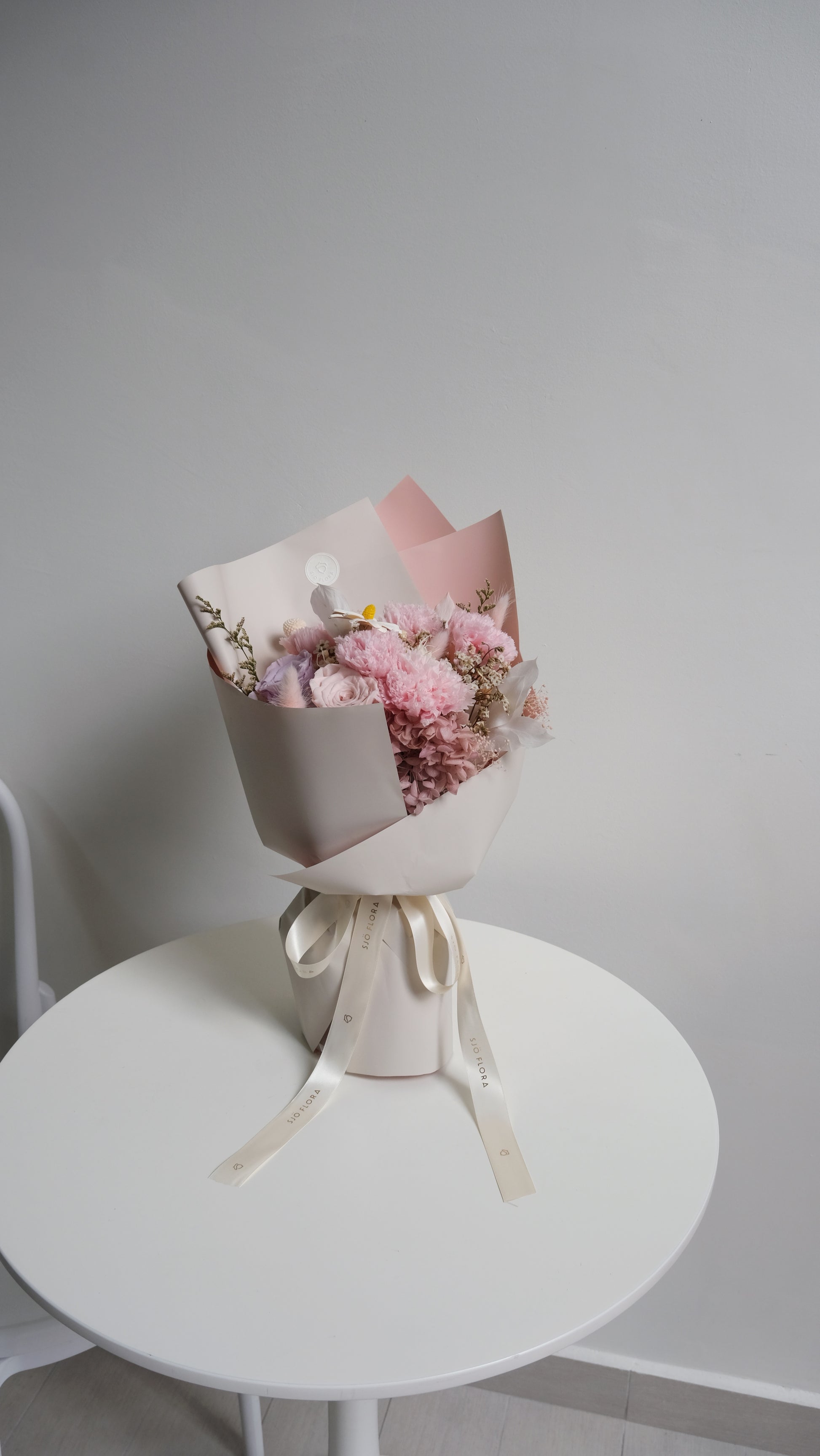 A gift can be so much more than just an object; it can also be a physical expression of love. Whether you're looking for a way to surprise your loved ones or just want a unique alternative, flower bouquet are a wonderful addition to any room. At SJÖ Flora, we are always looking for new, innovative ways to bring nature to you. Our flower bouquet are handcrafted with careful attention and unparalleled love for detail. We create each bouquet as though it were intended for a dear friend or loved one, so that you can experience that same feeling when receiving one of our gifts. From preserved roses, carnations, sola flowers, and gerberas, the beauty of flower bouquet is that they are so versatile. No matter the occasion, a beautiful bouquet of preserved flowers not only brings natural and exquisite beauty into your house but also preserves fond memories. They are a perfect present for your family, friends, and loved ones to show how much you care for them and make them feel special on any occasion, whether it's your anniversary, birthday, or wedding. And if you want to make your gift even more personal and memorable, you can even go the extra mile and opt to include personalised wordings to your bouquet.
