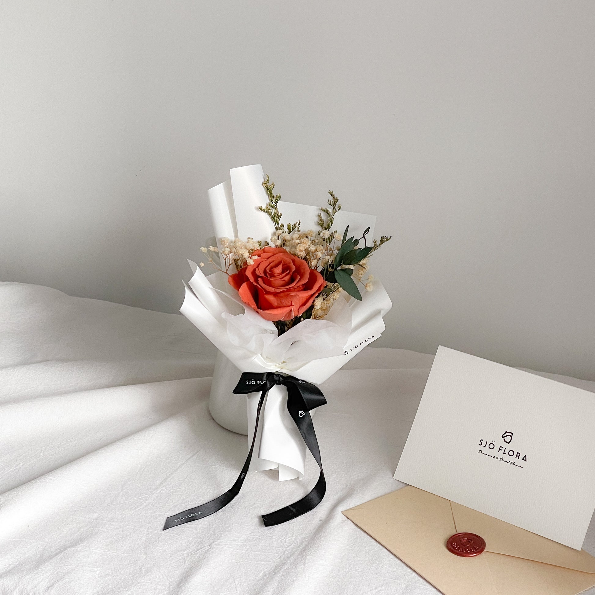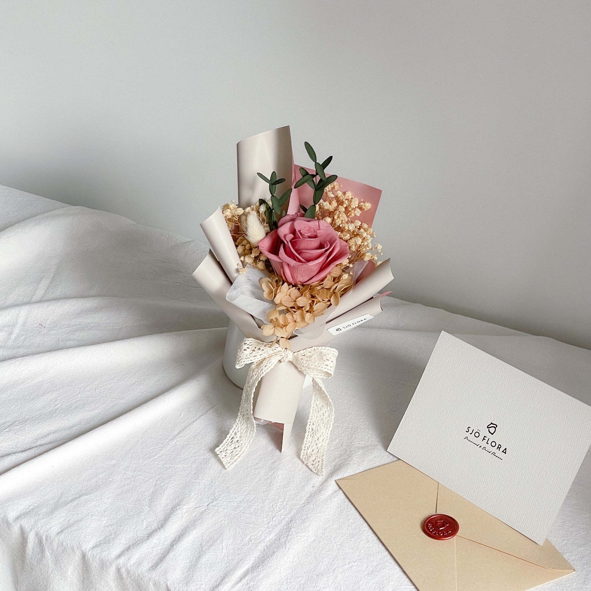 A gift can be so much more than just an object; it can also be a physical expression of love. Whether you're looking for a way to surprise your loved ones or just want a unique alternative, flower bouquet are a wonderful addition to any room. At SJÖ Flora, we are always looking for new, innovative ways to bring nature to you. Our flower bouquet are handcrafted with careful attention and unparalleled love for detail. We create each bouquet as though it were intended for a dear friend or loved one, so that you can experience that same feeling when receiving one of our gifts. From preserved roses, carnations, sola flowers, and gerberas, the beauty of flower bouquet is that they are so versatile. No matter the occasion, a beautiful bouquet of preserved flowers not only brings natural and exquisite beauty into your house but also preserves fond memories. They are a perfect present for your family, friends, and loved ones to show how much you care for them and make them feel special on any occasion, whether it's your anniversary, birthday, or wedding. And if you want to make your gift even more personal and memorable, you can even go the extra mile and opt to include personalised wordings to your bouquet.
