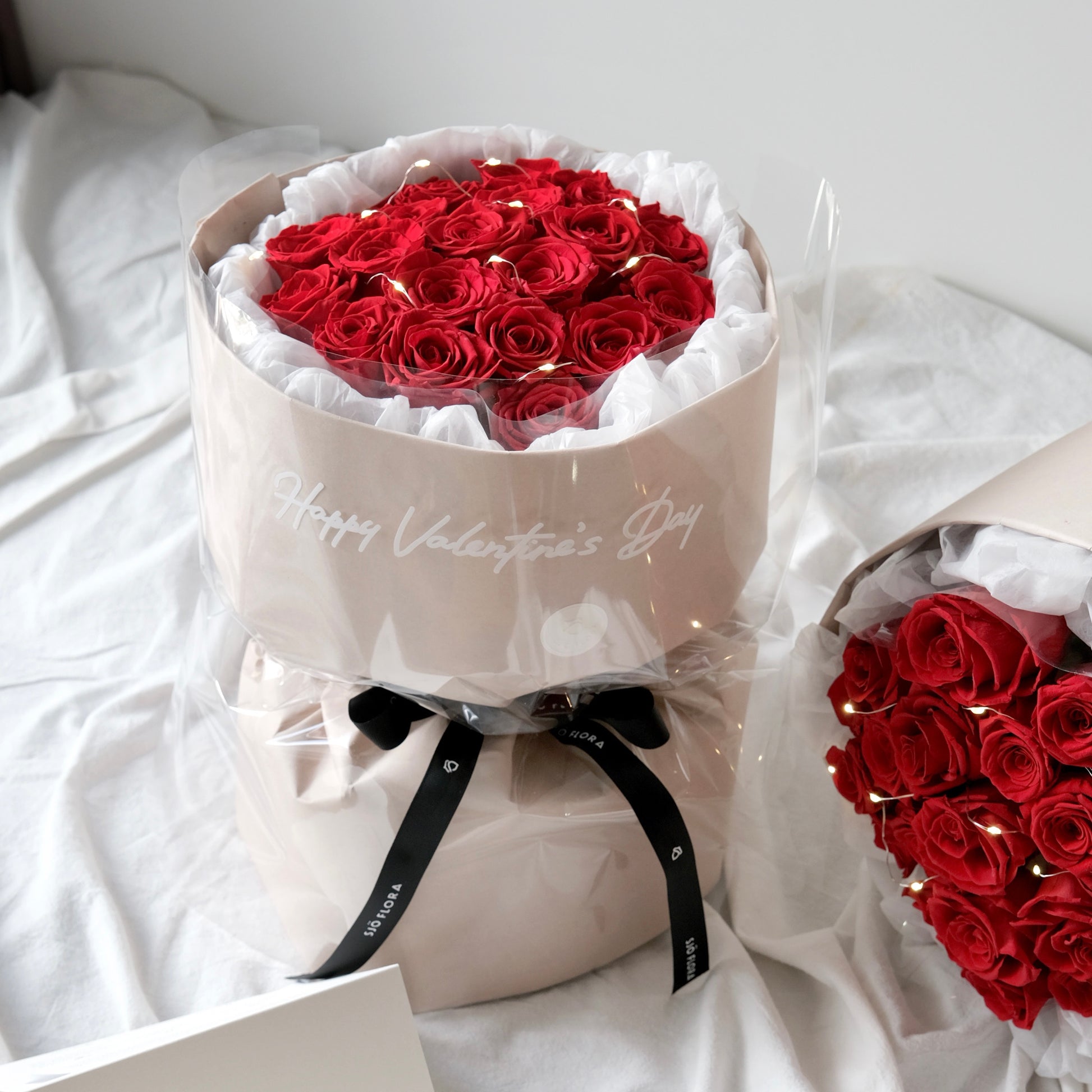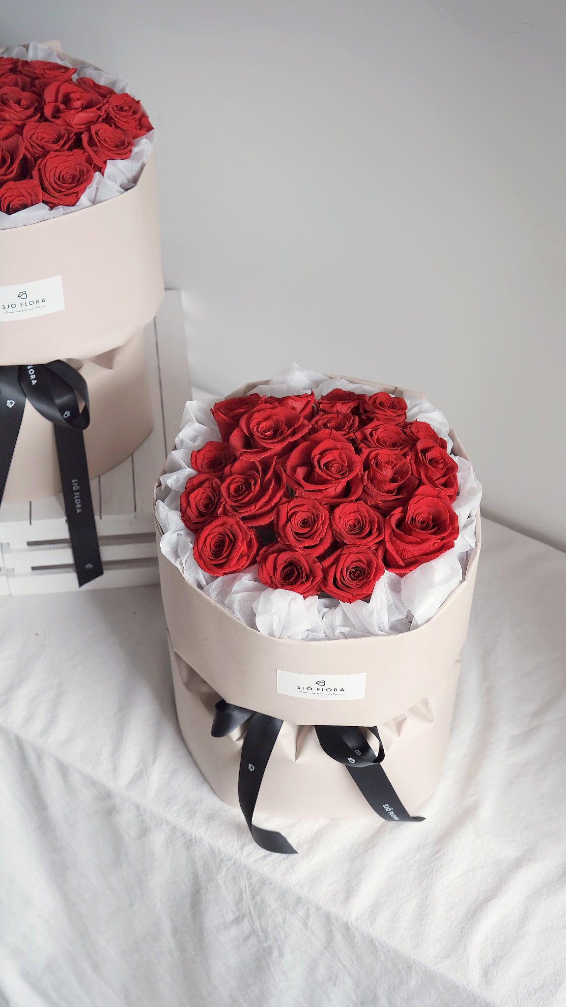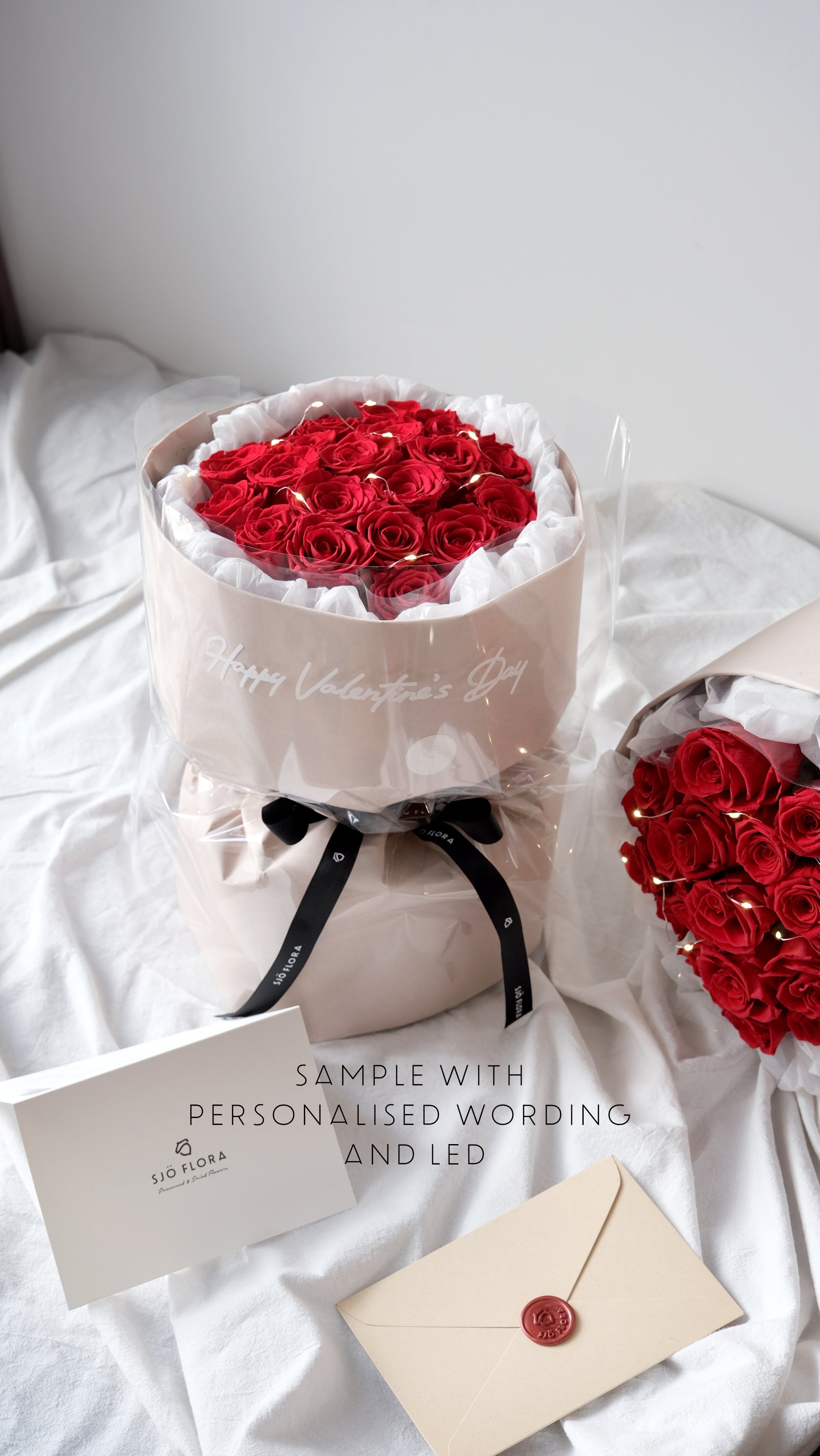 Arranged with 20 stalks of preserved red roses, this bouquet symbolises one’s sincerity and belief. Gift this bouquet to your special someone, and let them know you love them wholeheartedly. It’s the perfect present for any romantic occasion whether it’s for a Proposal, Valentine's Day, Anniversary and/or your favourite date.